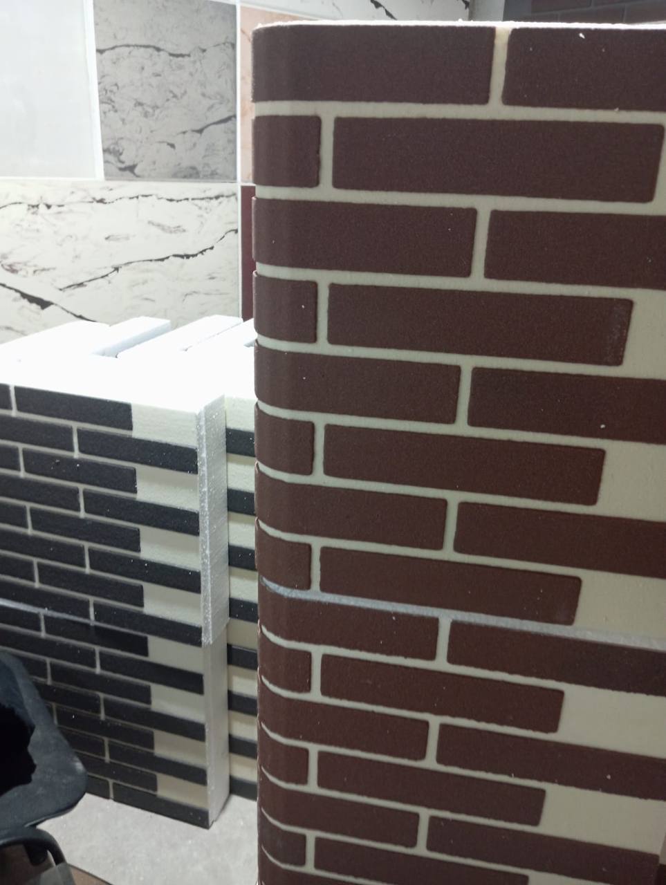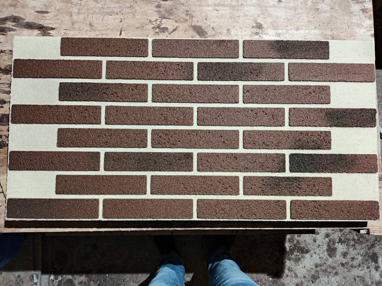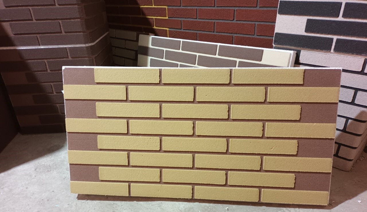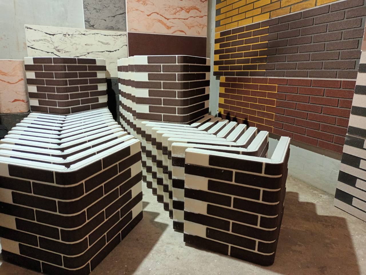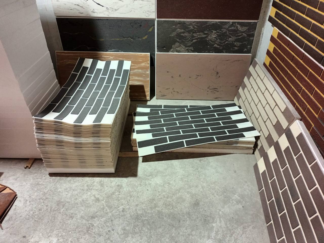 Стандартный размер термопанели и получается 1000х500 мм, гибкий камень чуть меньше – 950х550 мм, но мы можем производить размер под заказчика, т.е от размера кирпича до 3-х метровых обоев.