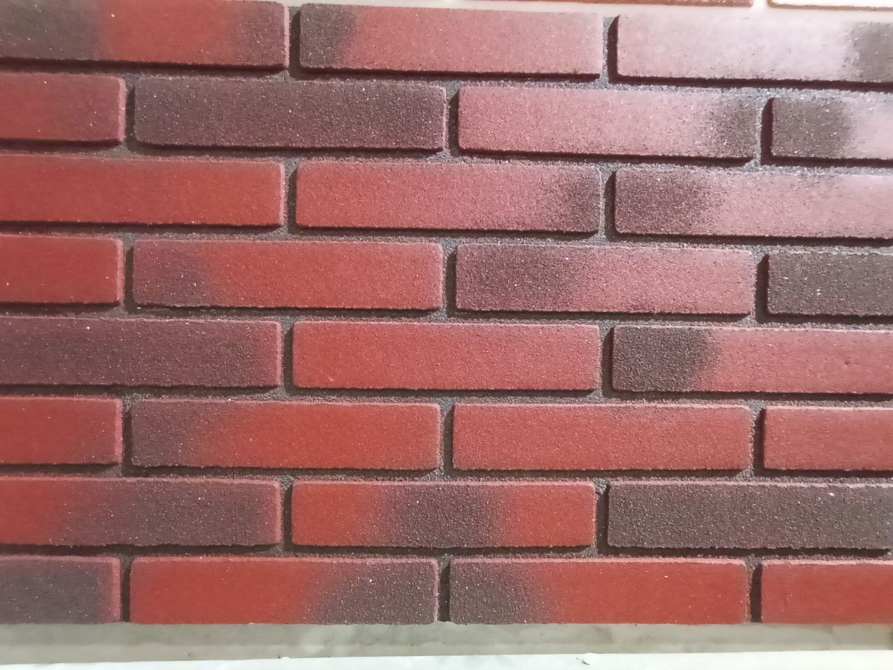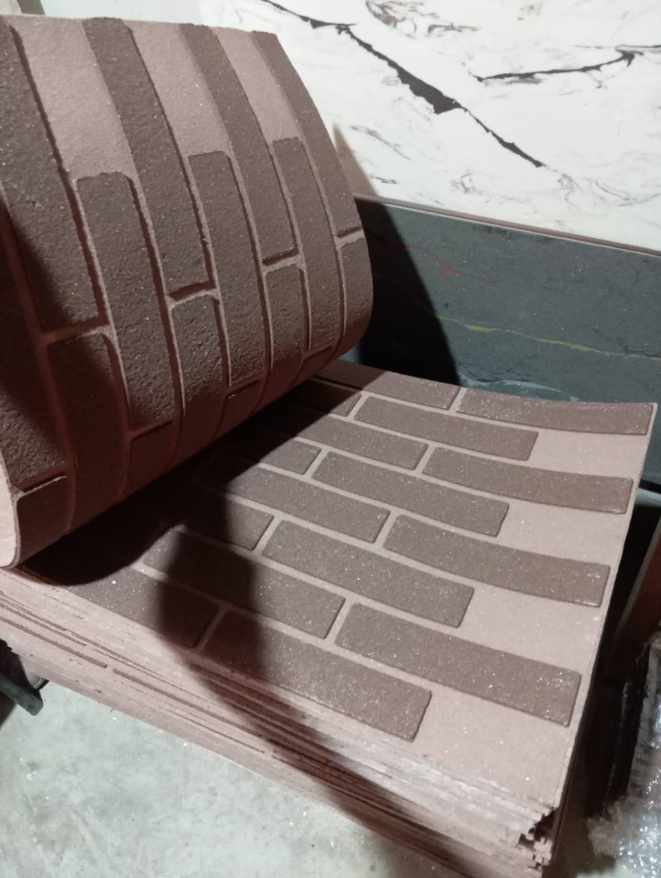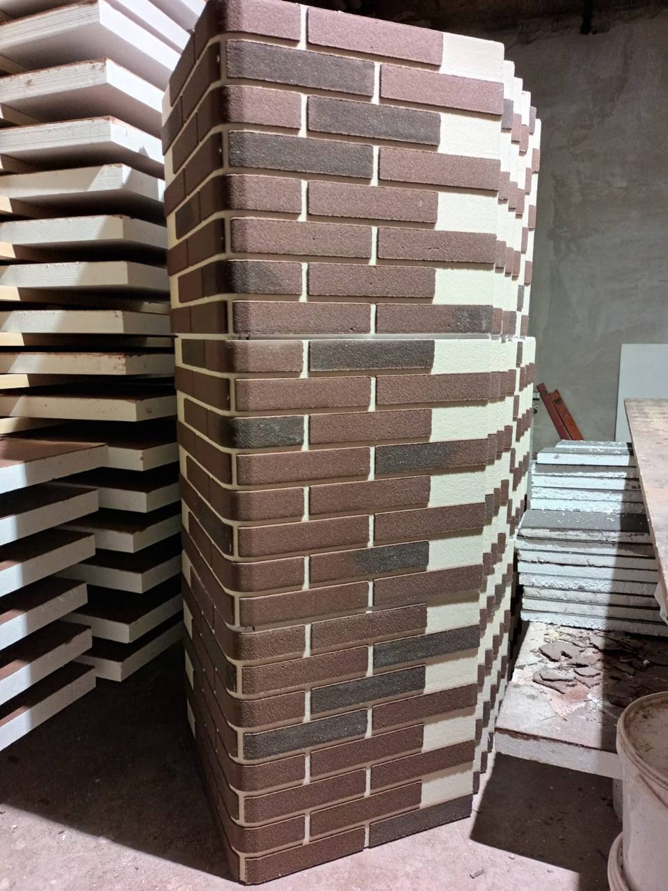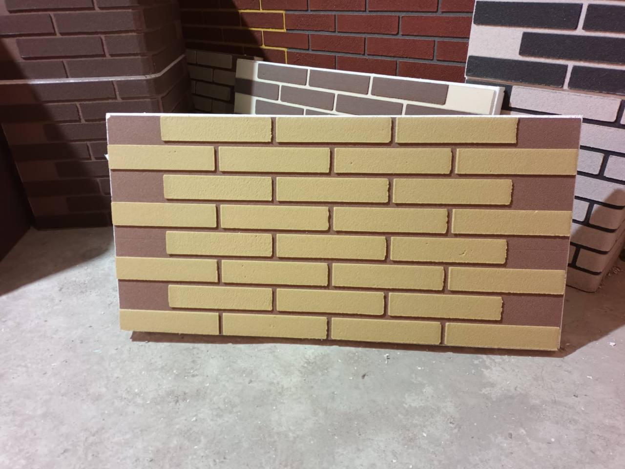 Стандартный размер термопанели и получается 1000х500 мм, гибкий камень чуть меньше – 950х550 мм, но мы можем производить размер под заказчика, т.е от размера кирпича до 3-х метровых обоев.