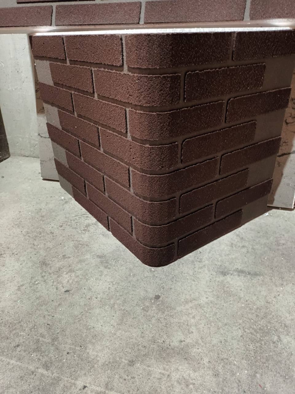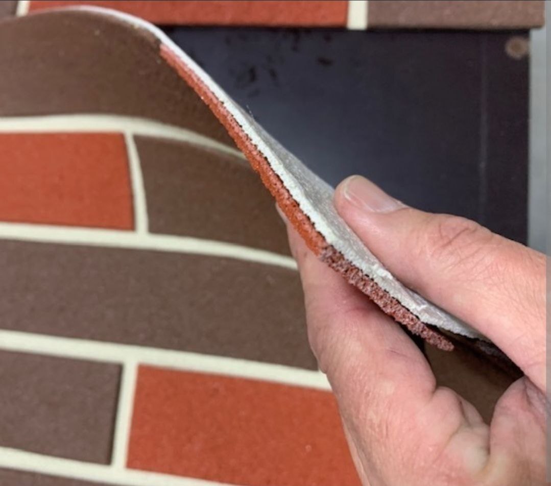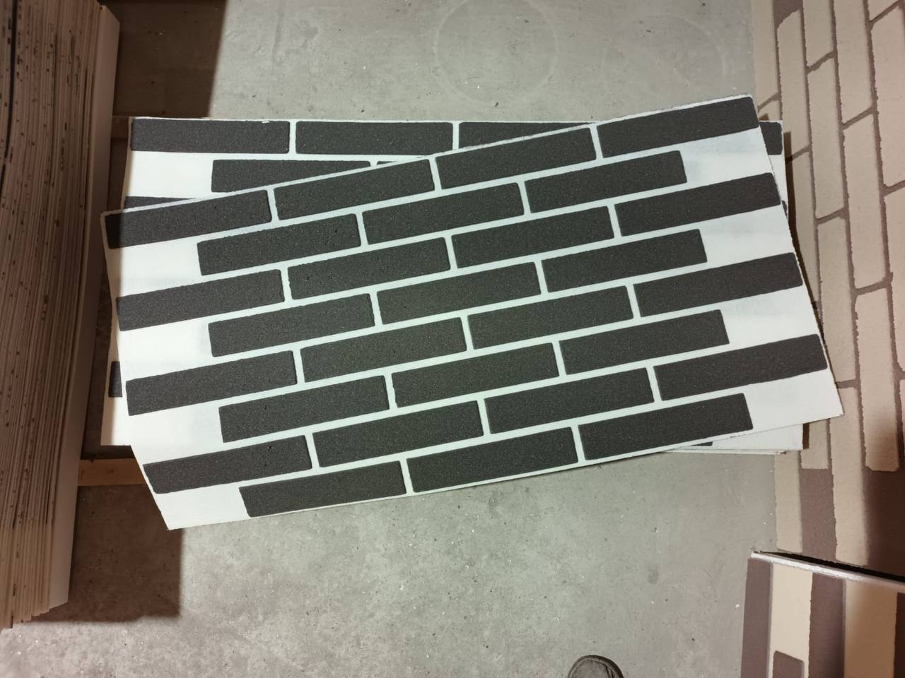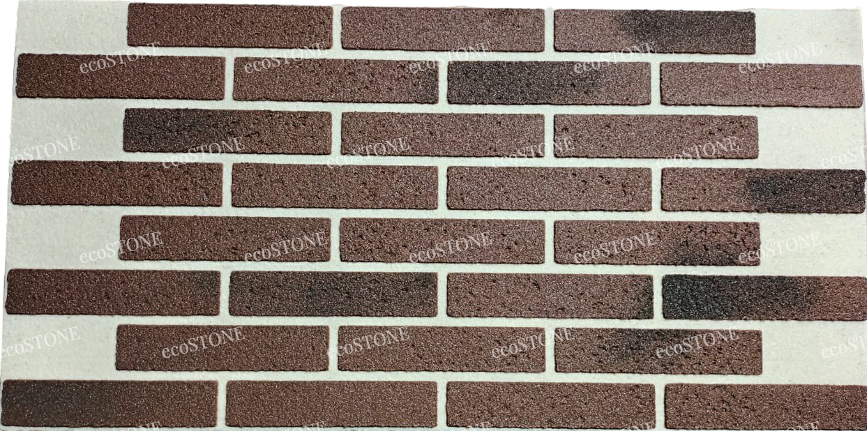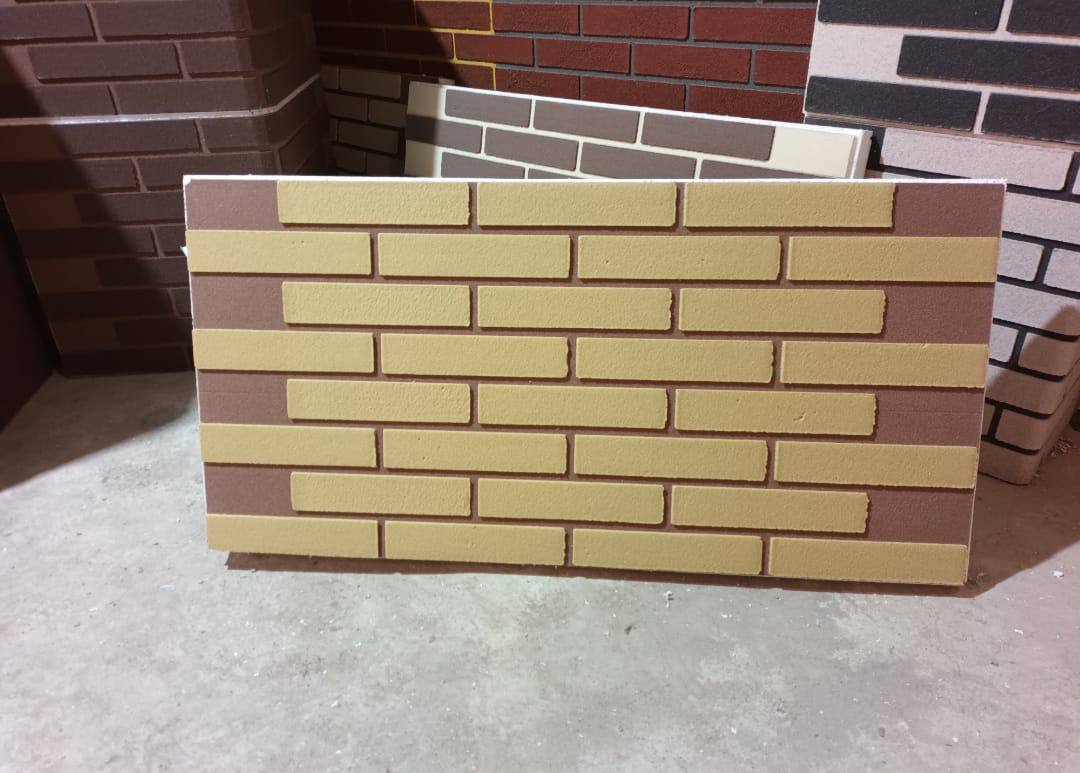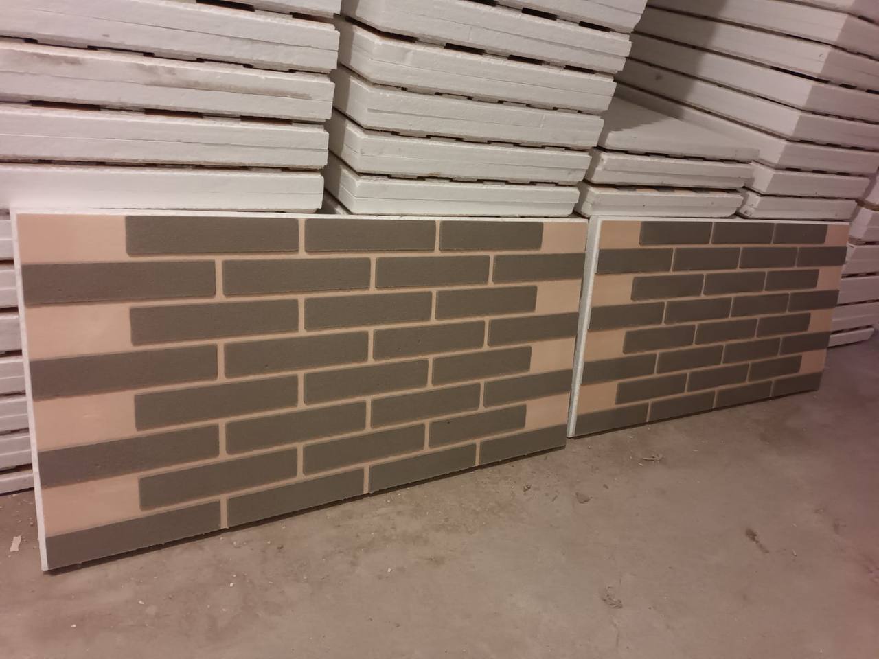 Стандартный размер термопанели и получается 1000х500 мм, гибкий камень чуть меньше – 950х550 мм, но мы можем производить размер под заказчика, т.е от размера кирпича до 3-х метровых обоев.