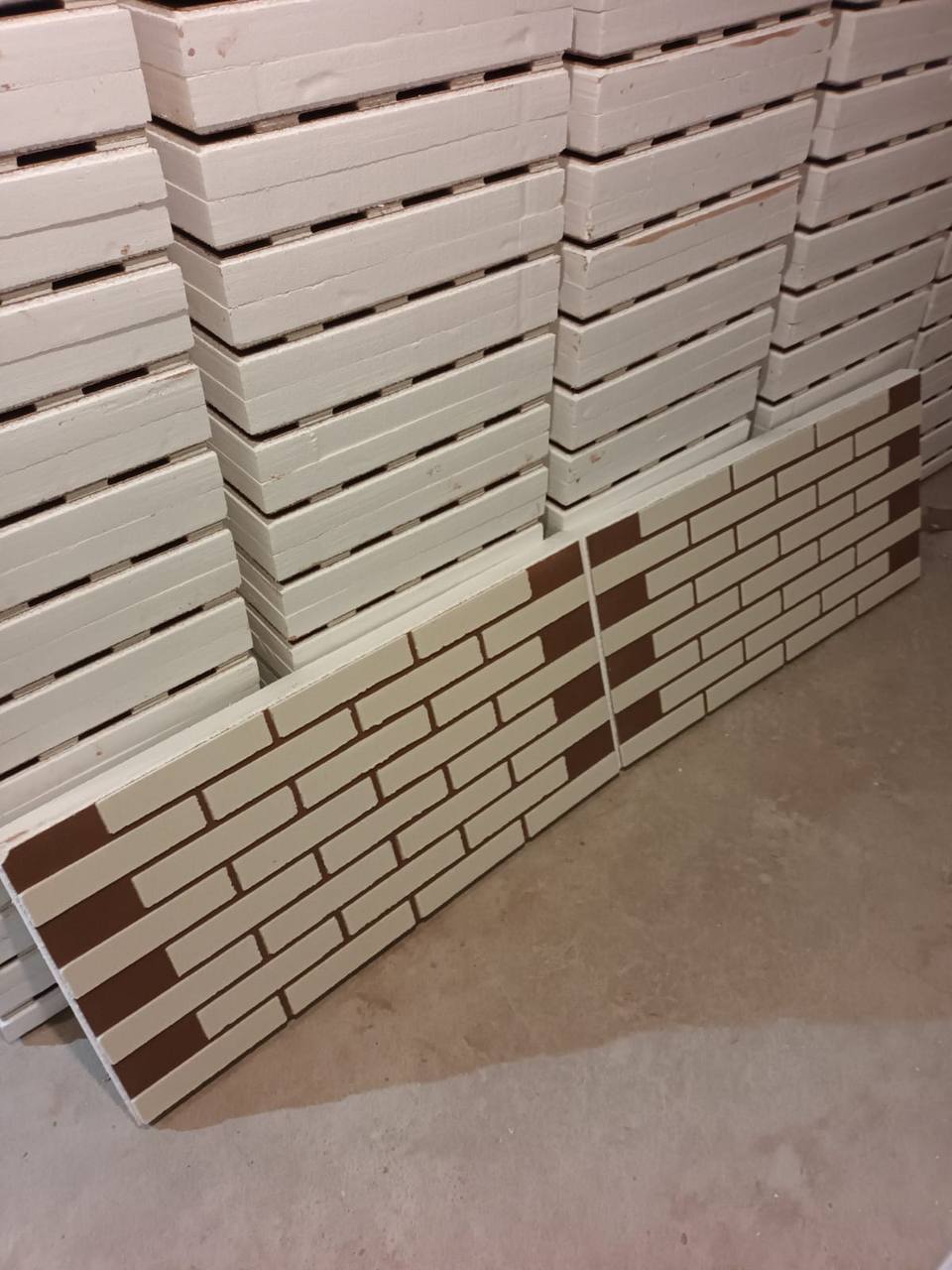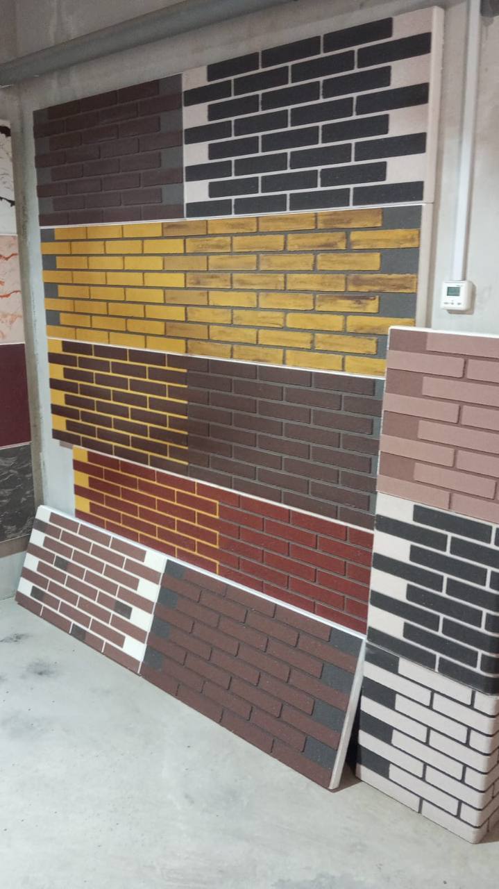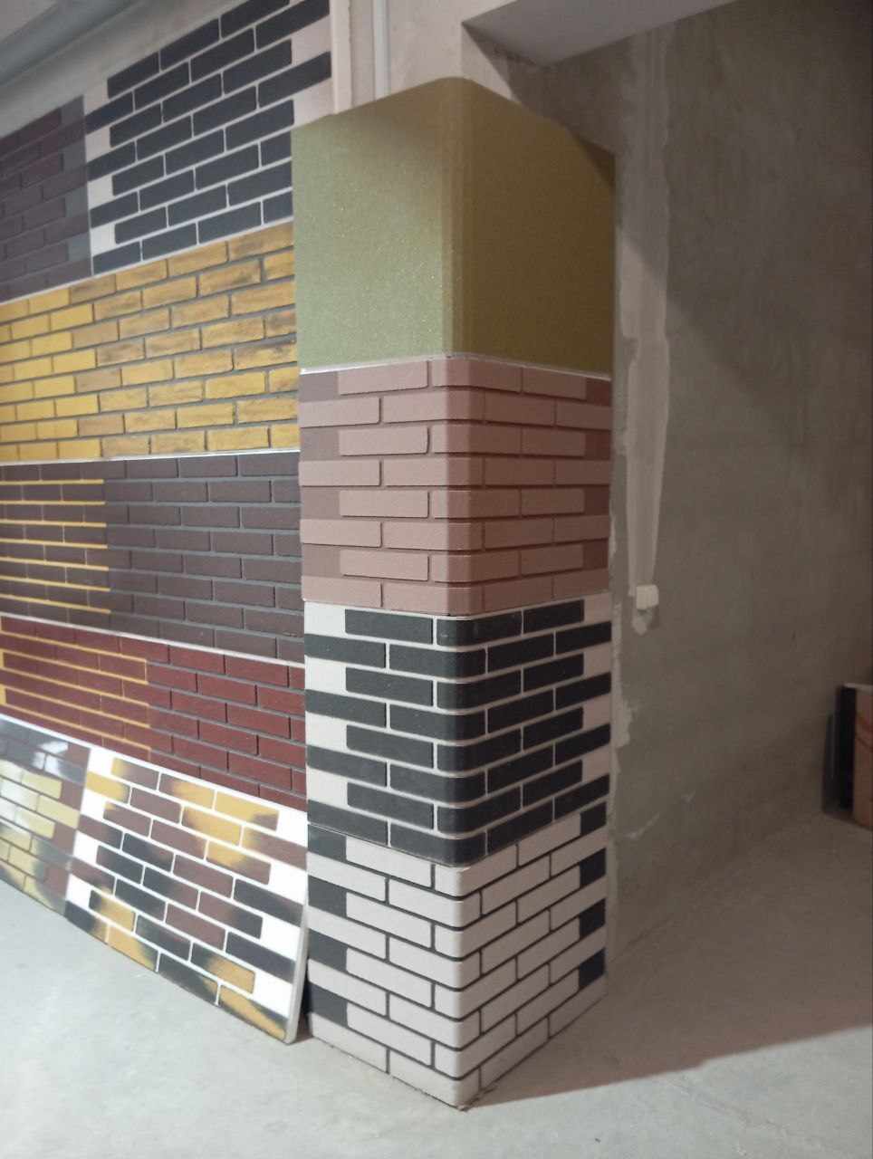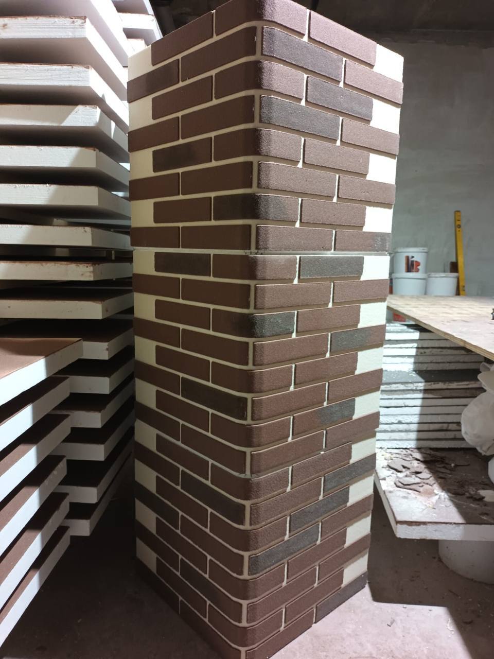 Стандартный размер термопанели и получается 1000х500 мм, гибкий камень чуть меньше – 950х550 мм, но мы можем производить размер под заказчика, т.е от размера кирпича до 3-х метровых обоев.