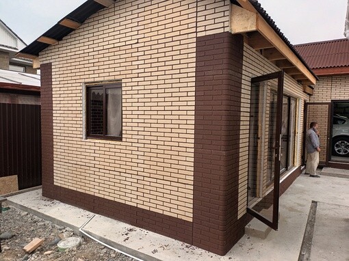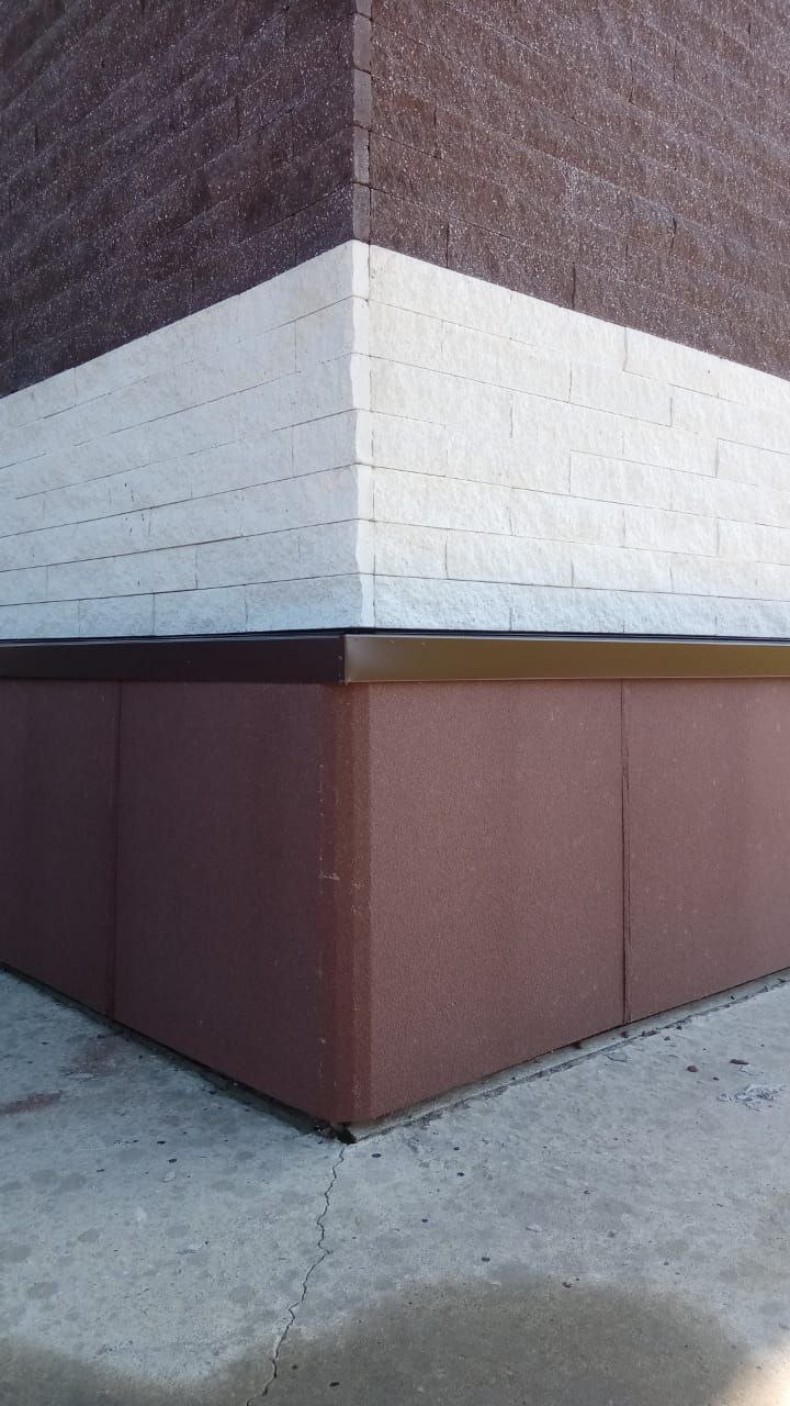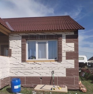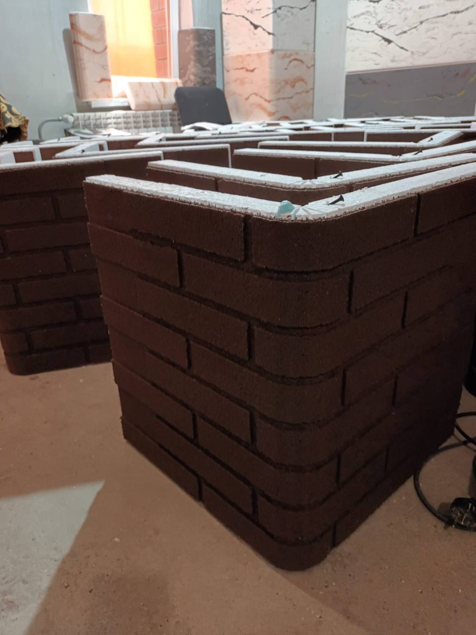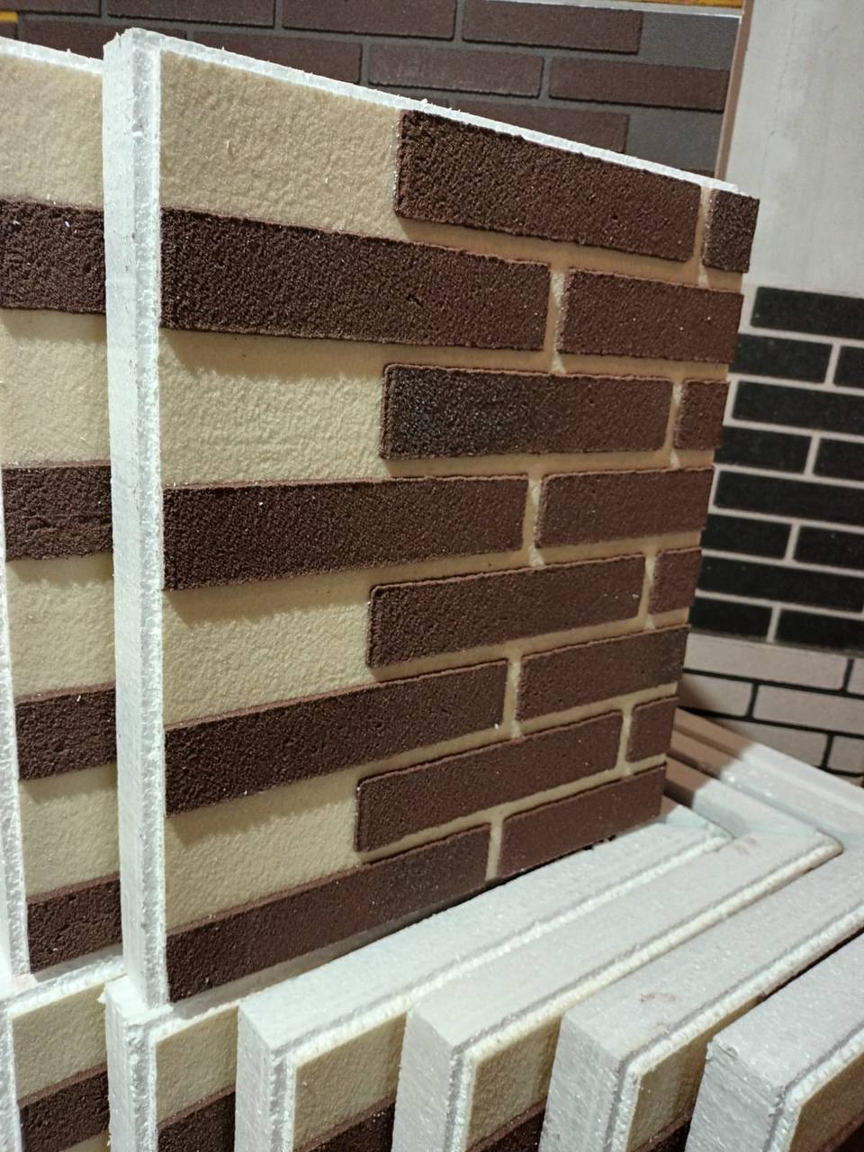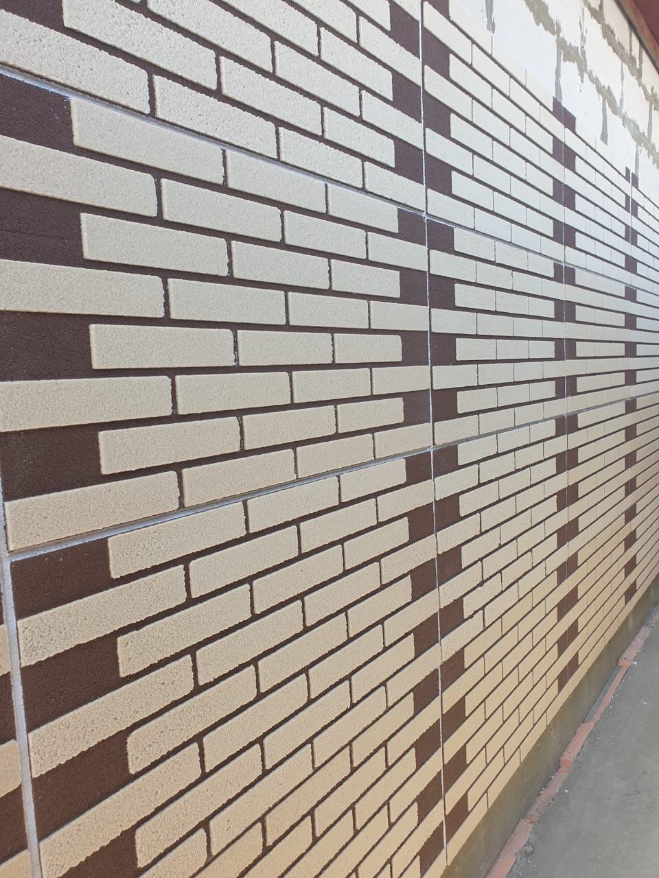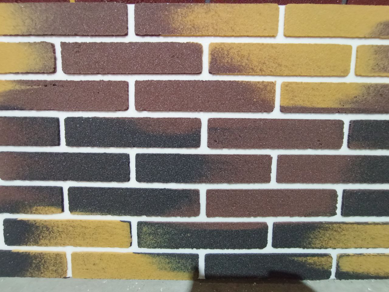 Стандартный размер термопанели и получается 1000х500 мм, гибкий камень чуть меньше – 950х550 мм, но мы можем производить размер под заказчика, т.е от размера кирпича до 3-х метровых обоев.