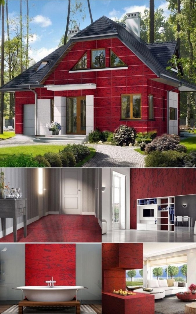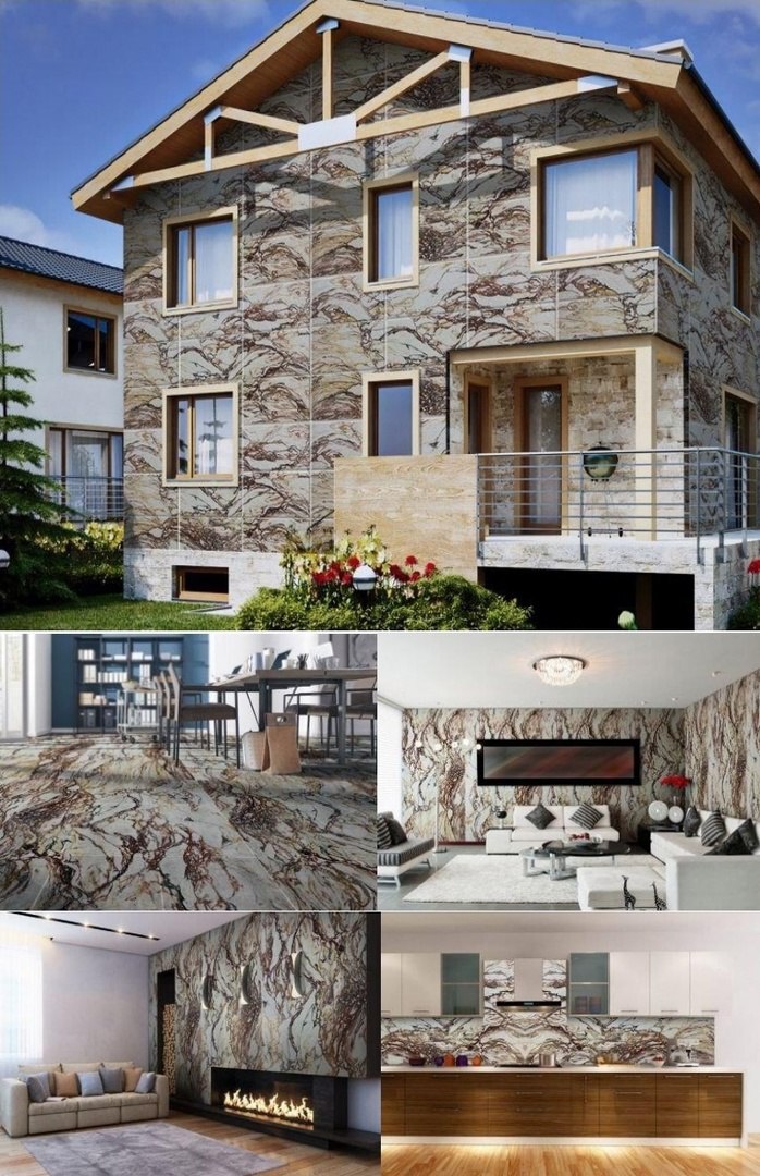 Гибкий камень может применяться как для отделки фасада, в том числе для отделки цоколя, так и для отдели интерьеров: стены, полы, кухонные фартуки, отделка мебели и оклейка светильников и т.д.