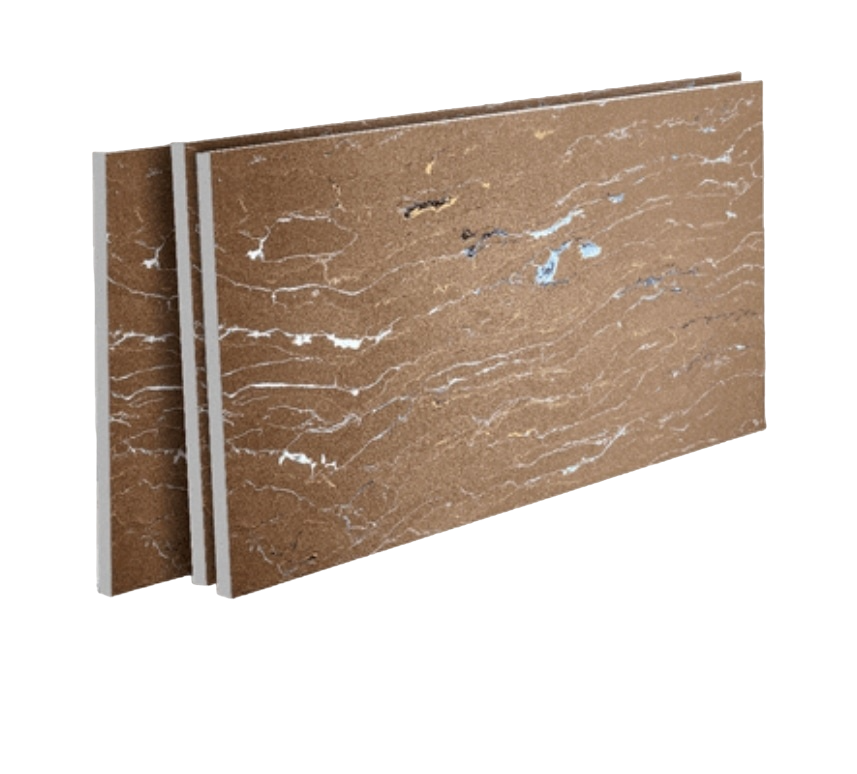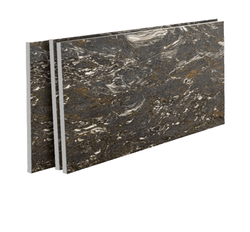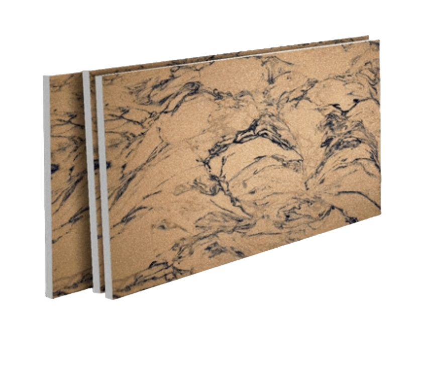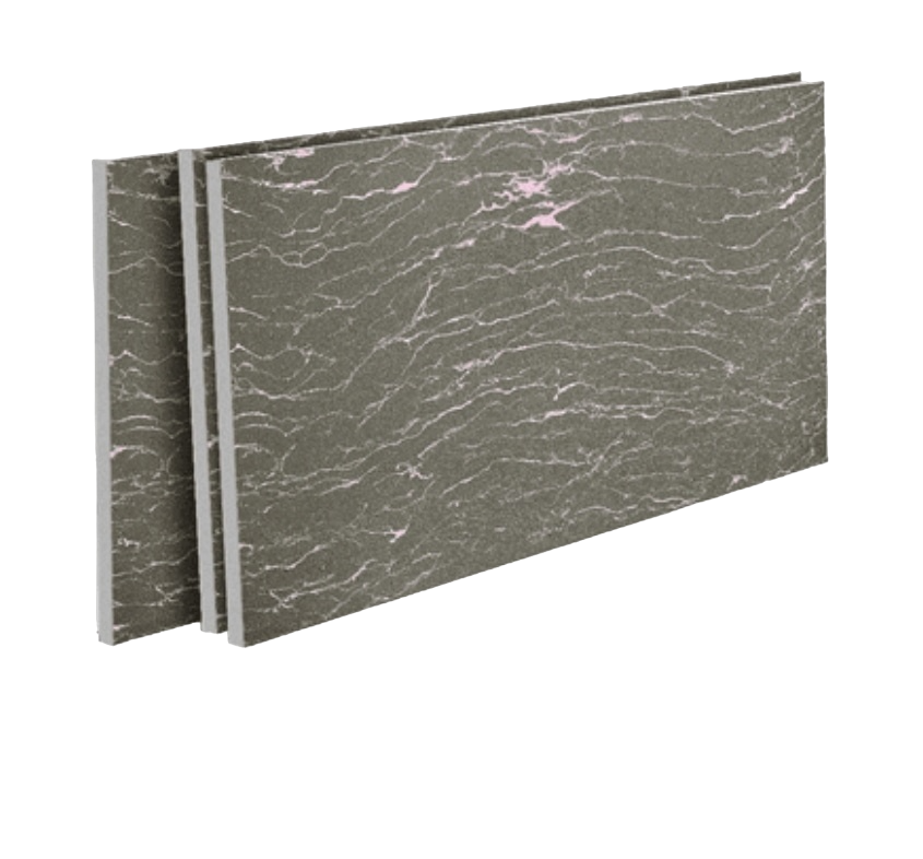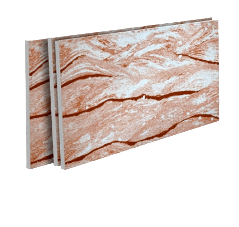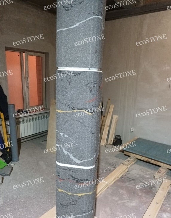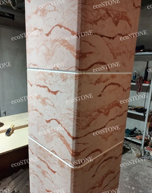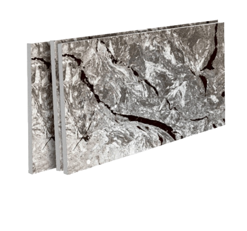 Гибкий камень представляет собой мраморную или кварцевую крошку, которую мы окрашиваем сухими пигментами и с помощью клеевого состава наносим на основу-стеклоткань. Термопанели – это все то же самое, только вместо стеклоткани используется жесткий утеплитель, например, минеральная плита или пенопласт.