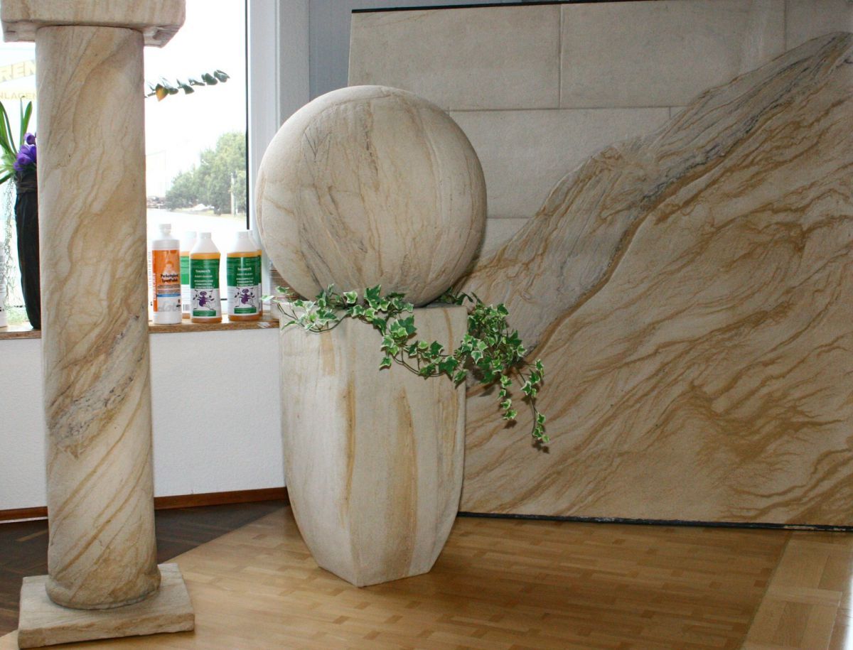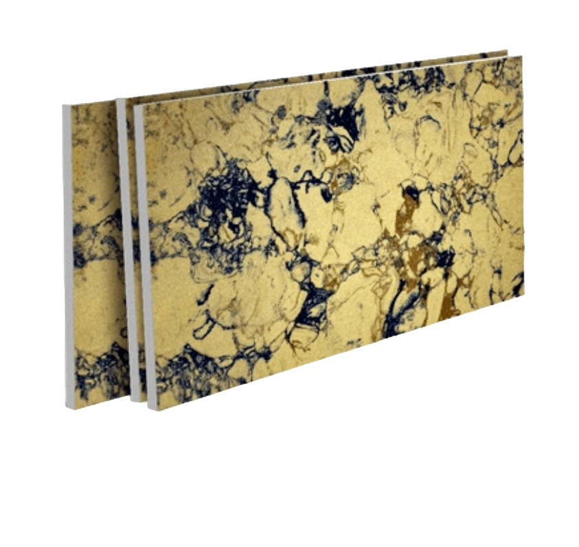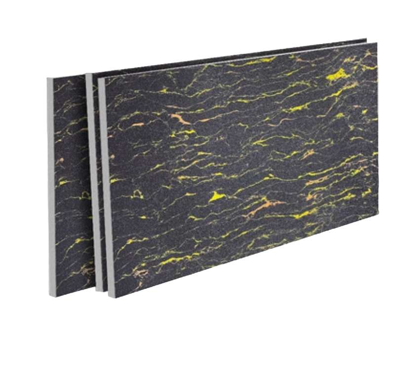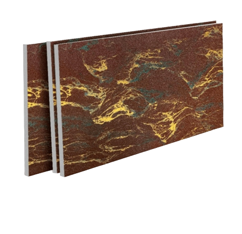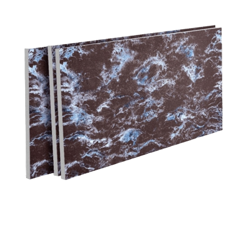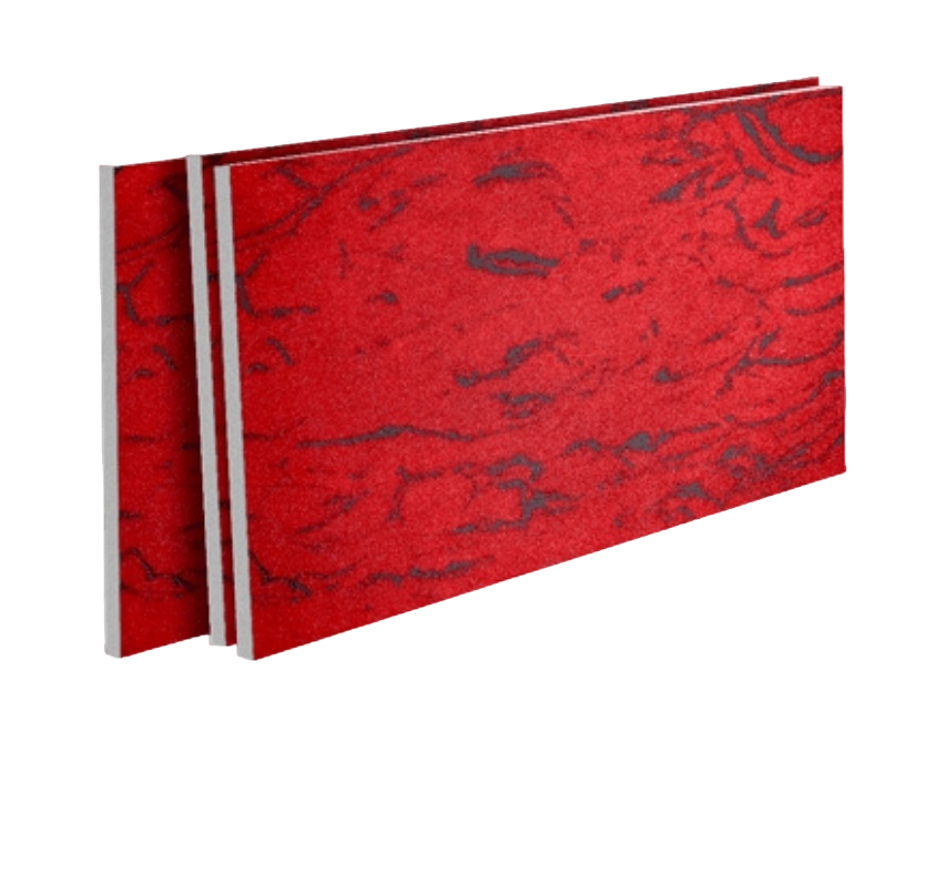 Гибкий камень представляет собой мраморную или кварцевую крошку, которую мы окрашиваем сухими пигментами и с помощью клеевого состава наносим на основу-стеклоткань. Термопанели – это все то же самое, только вместо стеклоткани используется жесткий утеплитель, например, минеральная плита или пенопласт.